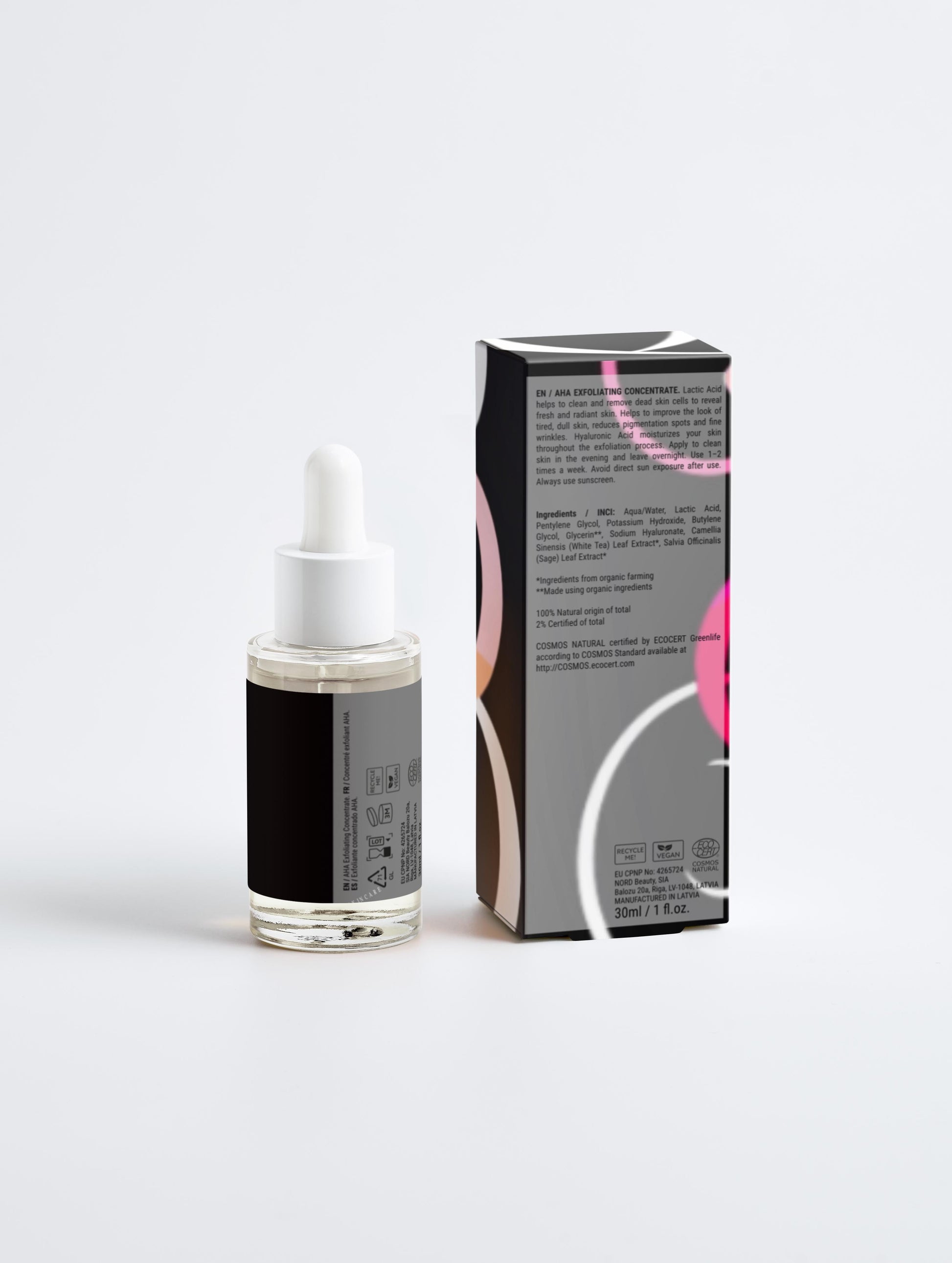 Upgrade your skincare routine by including the Lactic Acid and Hyaluronic Acid-infused product! You will enjoy the benefits of exfoliation and hydration! Product description: With 10% Lactic Acid that helps to remove dead skin cells and promote skin renewal, revealing fresh and radiant skin. Helps to improve the look of tired, dull skin and reduces pigmentation spots and fine wrinkles. 1% Hyaluronic Acid ensures that your skin remains moisturized and supple throughout the exfoliation process. Apply to clean skin in the evening and leave overnight. Use 1–2 times a week. Avoid direct sun exposure after use. Always use sunscreen. Refreshes, Brightens, Hydrating exfoliator, face-care, Exfoliator (Type), Blemishes (Concern), Dark spots (Concern), Normal (Skin type), Oily (Skin type), All skin types (Skin type), Hyaluronic Acid (Ingredients), White (Packaging color), Transparent (Packaging color) 10% Lactic Acid, 1% Hyaluronic Acid, Sage Extract, White Tea Extract